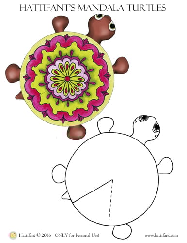 Here is Cousin Tammy, the little Mandala Turtle that comes to visit you free of charge. She cannot wait for you to download her, print and cut her out, glue together and start playing with her!
