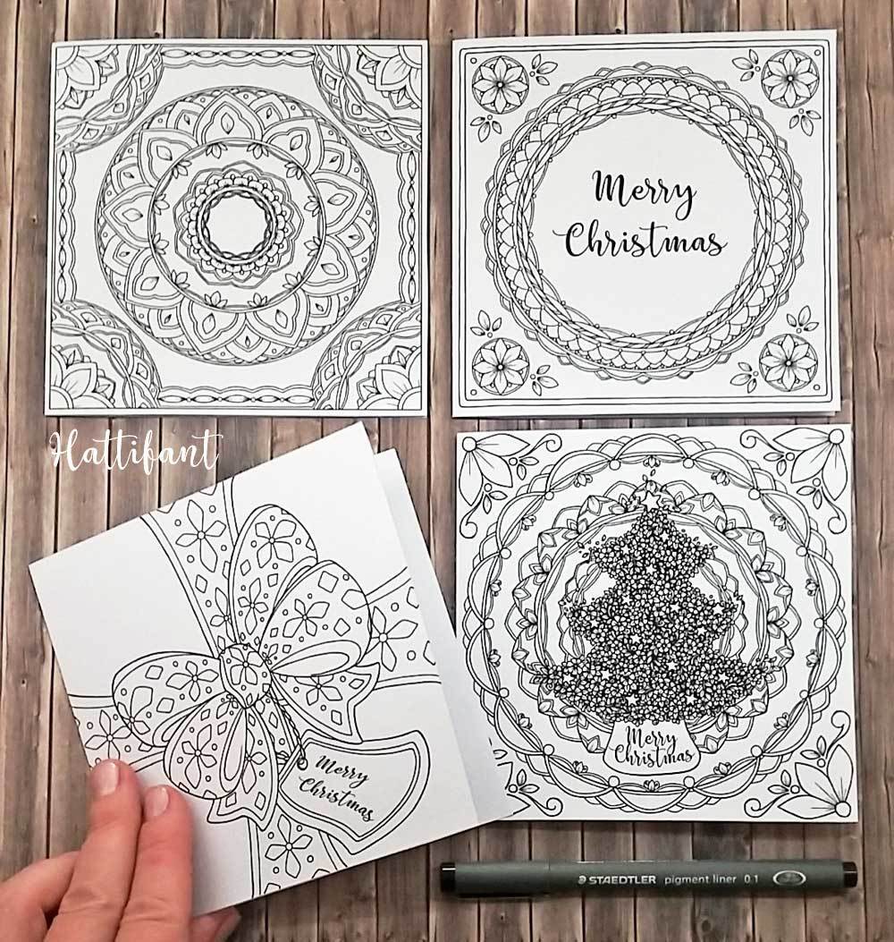 For personal use only. Commercial use prohibited. All art work is copyright of Manja Burton (Hattifant). Copyright is non-transferable. You are not allowed to upload the printable to your server and website to share with others. Please LINK to https://hattifant.com/christmas-advent-calendar-mandala-endless-card for people to find the coloring page!