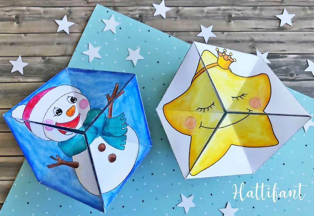 Here are two super cute and very EMOTIONAL Paper Toys: a Star and a Snowman as Kaleidocycles or Flextangles to Color, Craft and Play with.
