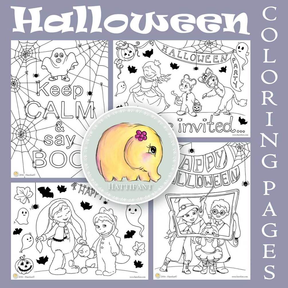 Here is Hattifant's first HALLOWEEN Coloring Page Bundle containing 4 really cute illustrations for you to bring to life with your choice of colors!