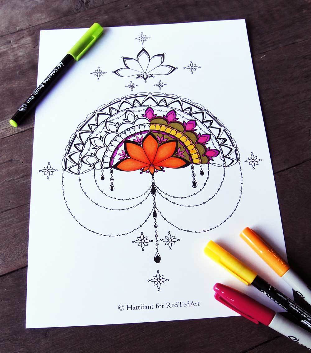 In order to get hold of the FULL MANDALA please visit my website at http://hattifant.com/mandala-therapy-coloring-pages/ for more information.