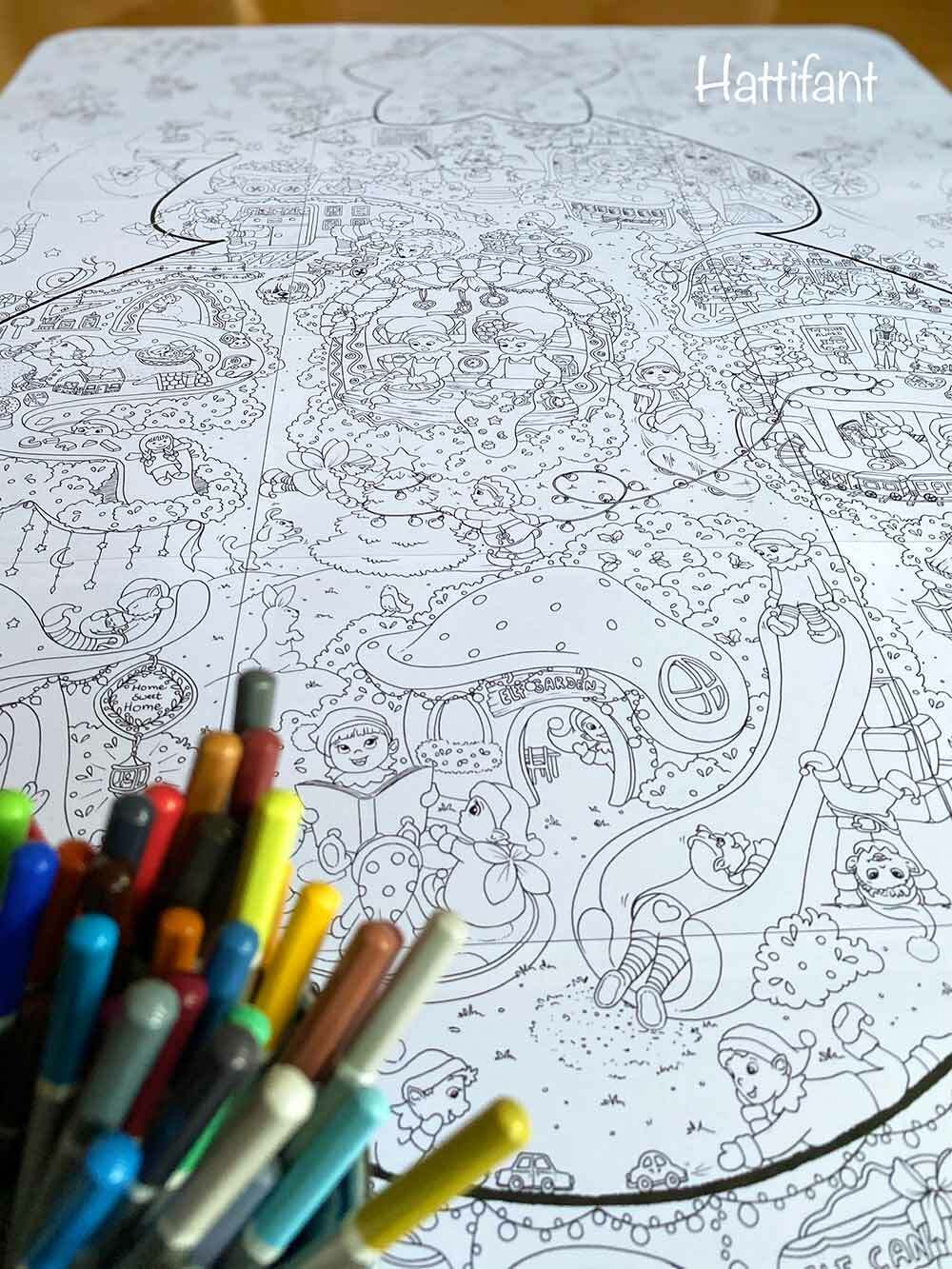 Find out more at: https://hattifant.com/giant-poster-christmas-tree-elf-factory-to-color/