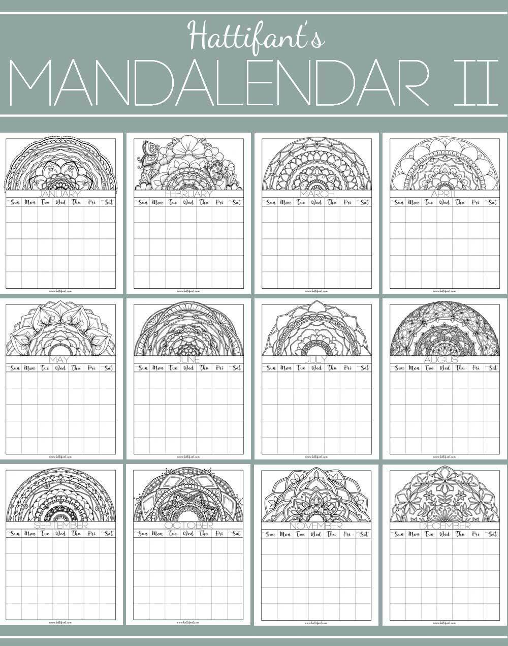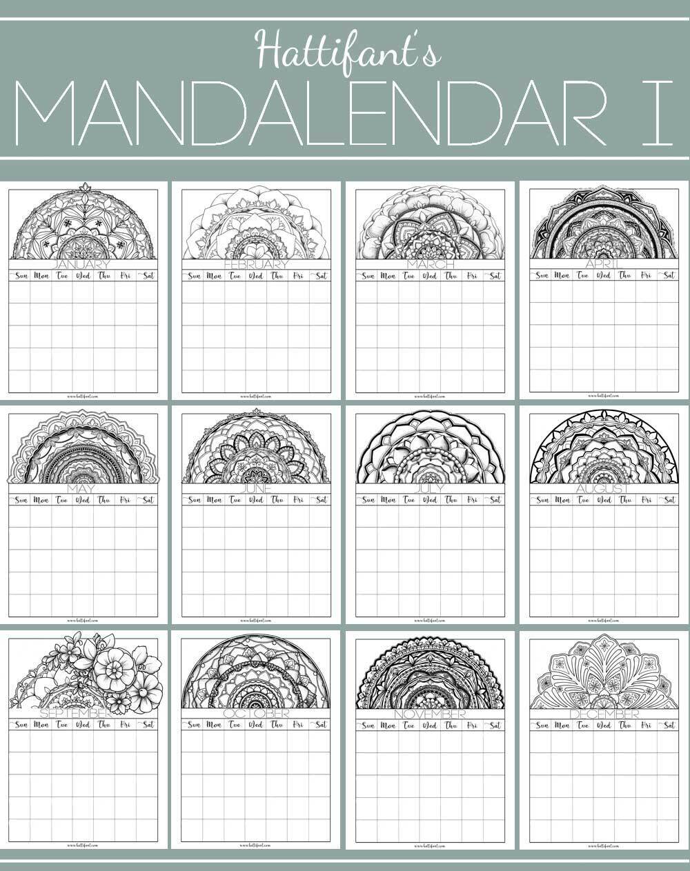 Hattifant's Mandalendar is a monthly calendar with Mandalas for your to color.