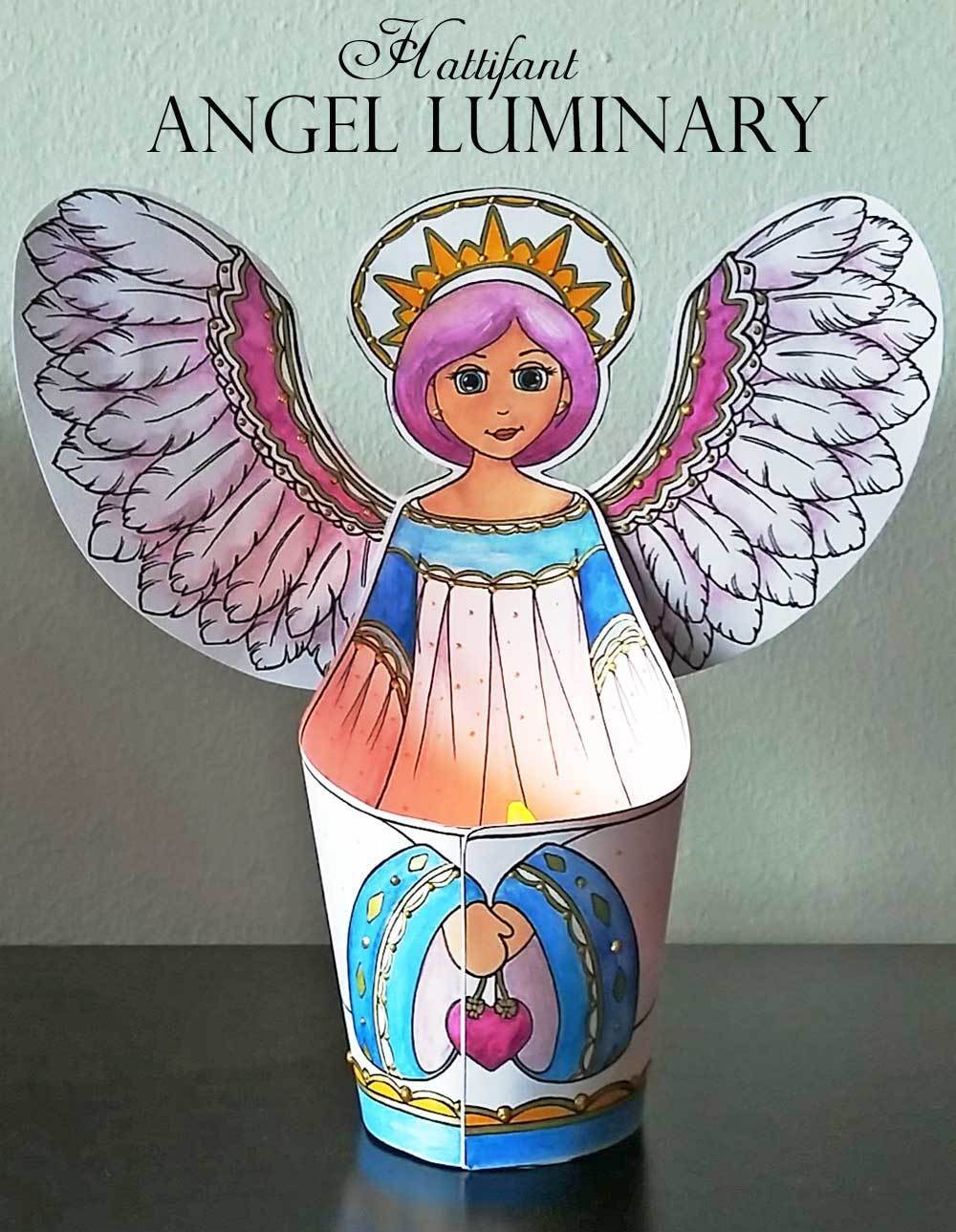 For personal use only. Commercial use prohibited. All art work is copyright of Manja Burton (Hattifant). Copyright is non-transferable. You are not allowed to upload the printable to your server and website to share with others. Please LINK to http://hattifant.com/angel-luminary-papercraft/ for people to find the coloring page! Many thanks!