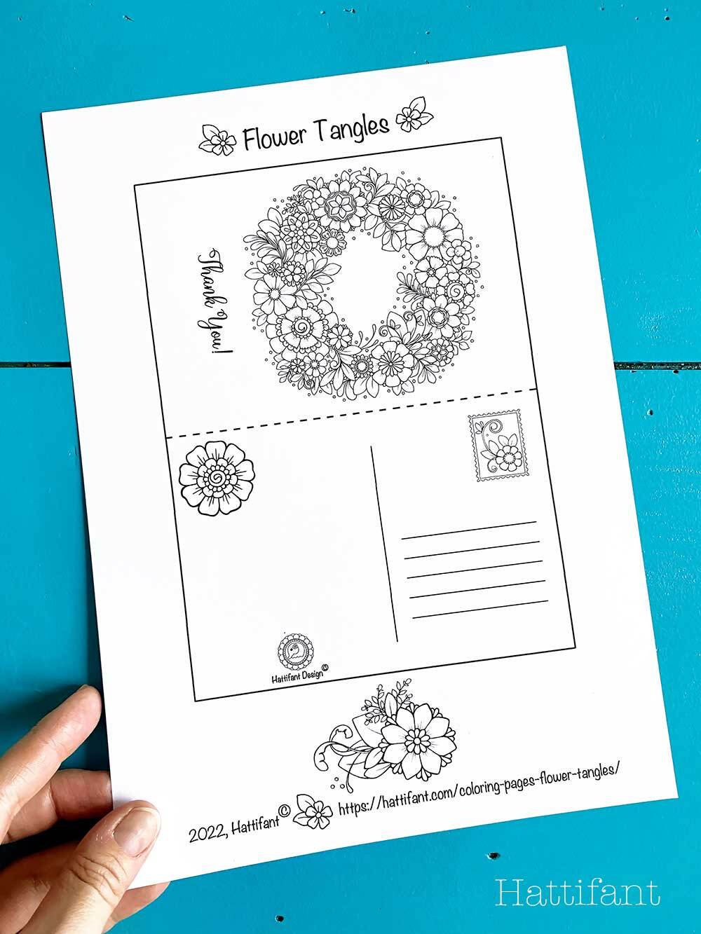 - BONUS: another Flower Tangle Coloring Page as well as Post Card with the wordings