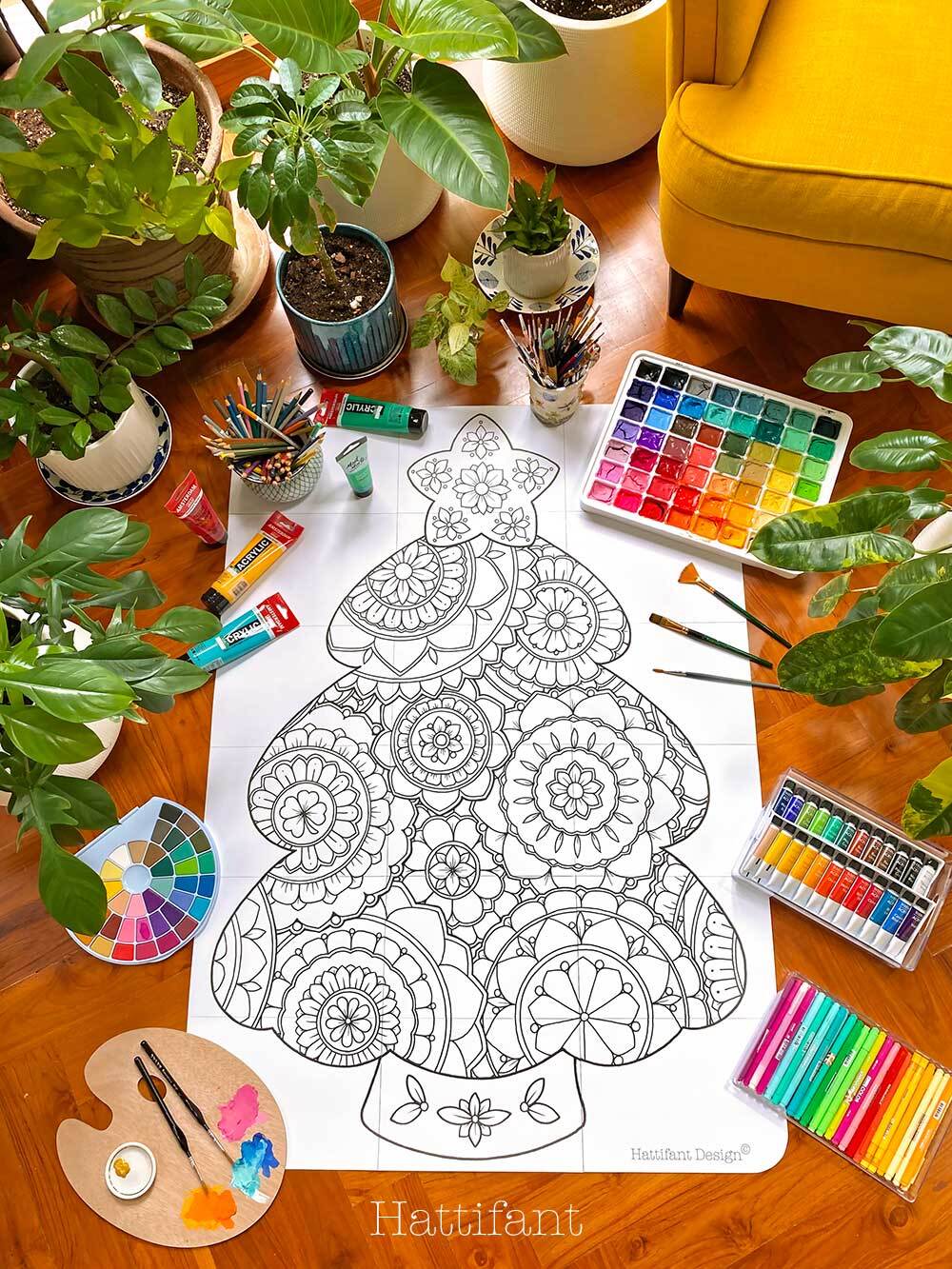 Find out more at: https://hattifant.com/giant-poster-christmas-tree-mandalas-to-color/