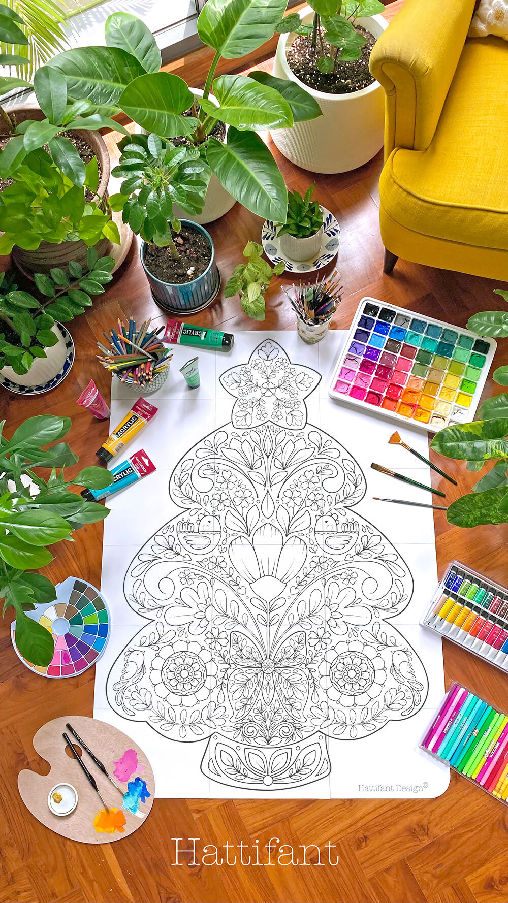 This year, Hattifant brings you an exciting new addition to its collection of GIANT Christmas Tree Posters to Color! The Yule Tree poster features stunning flower, bird, and butterfly designs, creating a festive masterpiece that’s as beautiful as it is fun to color.