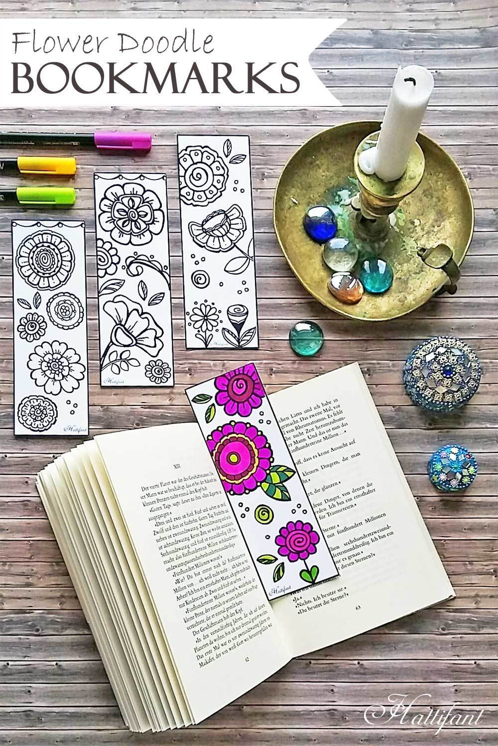 Find out more at: http://hattifant.com/flower-doodle-bookmarks/