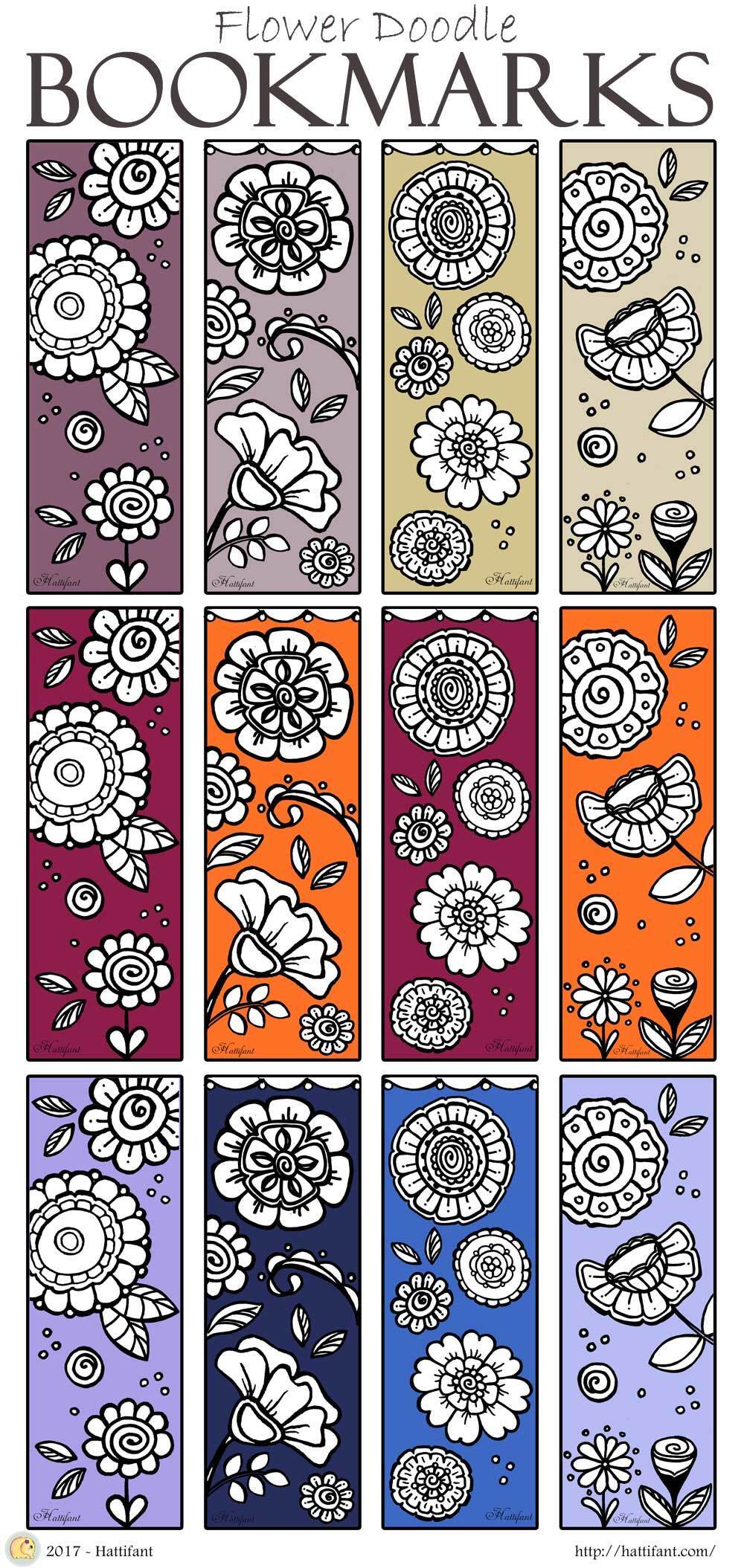 Find out more at:  http://hattifant.com/flower-doodle-bookmarks/